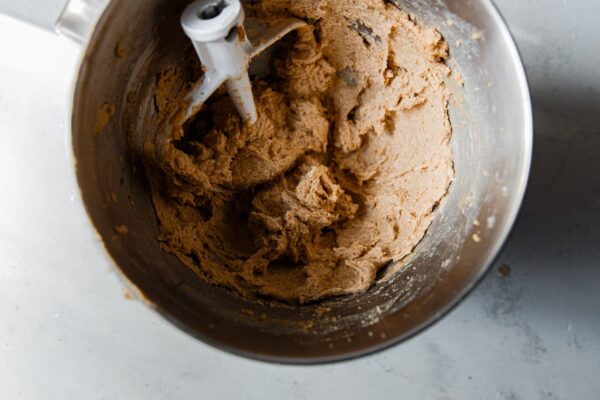 - In a medium bowl, whisk together the all purpose flour, baking soda, and salt. Set aside. In the bowl of a stand mixer fitted with a paddle attachment, combine the softened butter, light, brown, turbinado, and granulated sugars. Beat over medium speed until light and fluffy, 5 to 6 minutes. Scrape down the bowl with a rubber spatula several times throughout the creaming process to ensure the ingredients are incorporated evenly.