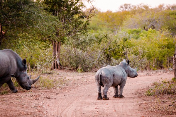 One of the first things that we saw (or tracked) on our afternoon game drive was a mother rhino with her baby!