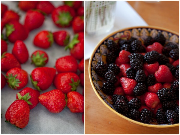 On the side, I tossed together some fresh berries, which included the first batch of farmer’s market strawberries this season. They were small, flavorful, and juicy. We ate them all!
