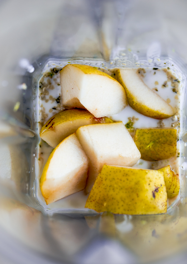 I’m actually not usually a big fan of pears (it’s a texture thing) but maybe smoothies would help abolish my aversion. I think so.