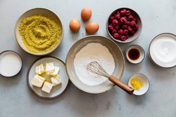 Rich and buttery, this tender crumbed cake is prepared with homemade pistachio flour and packed with fresh, tart raspberries. Today’s recipe is inspired and lightly adapted from this Blueberry Almond Tea Cake, a reader favorite.